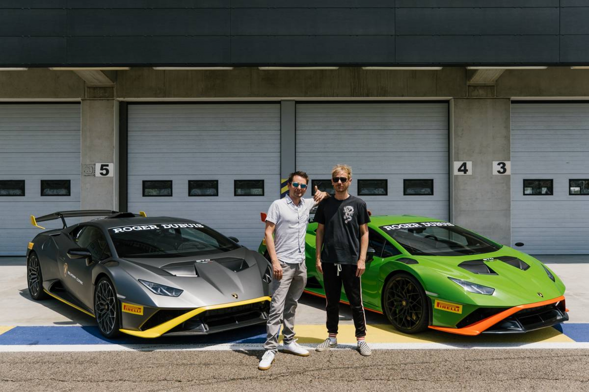 Sant'Agata Bolognese/Hong Kong, 22 June 2022 – Is there a difference between giving a concert in front of thousands of spectators and driving a super sports car? According to Muse, one of the most iconic rock bands of our time, it would seem not. The British band, in fact, have an irrepressible passion for Lamborghini, and it’s the members themselves who say that “driving a Lamborghini is like being on stage”. Maybe that’s why lead singer and guitarist Matt Bellamy and drummer Dom Howard, in advance of their performance at Firenze Rocks on June 17, decided to visit the Sant’Agata Bolognese headquarters and drive a Huracán STO on the Modena circuit.