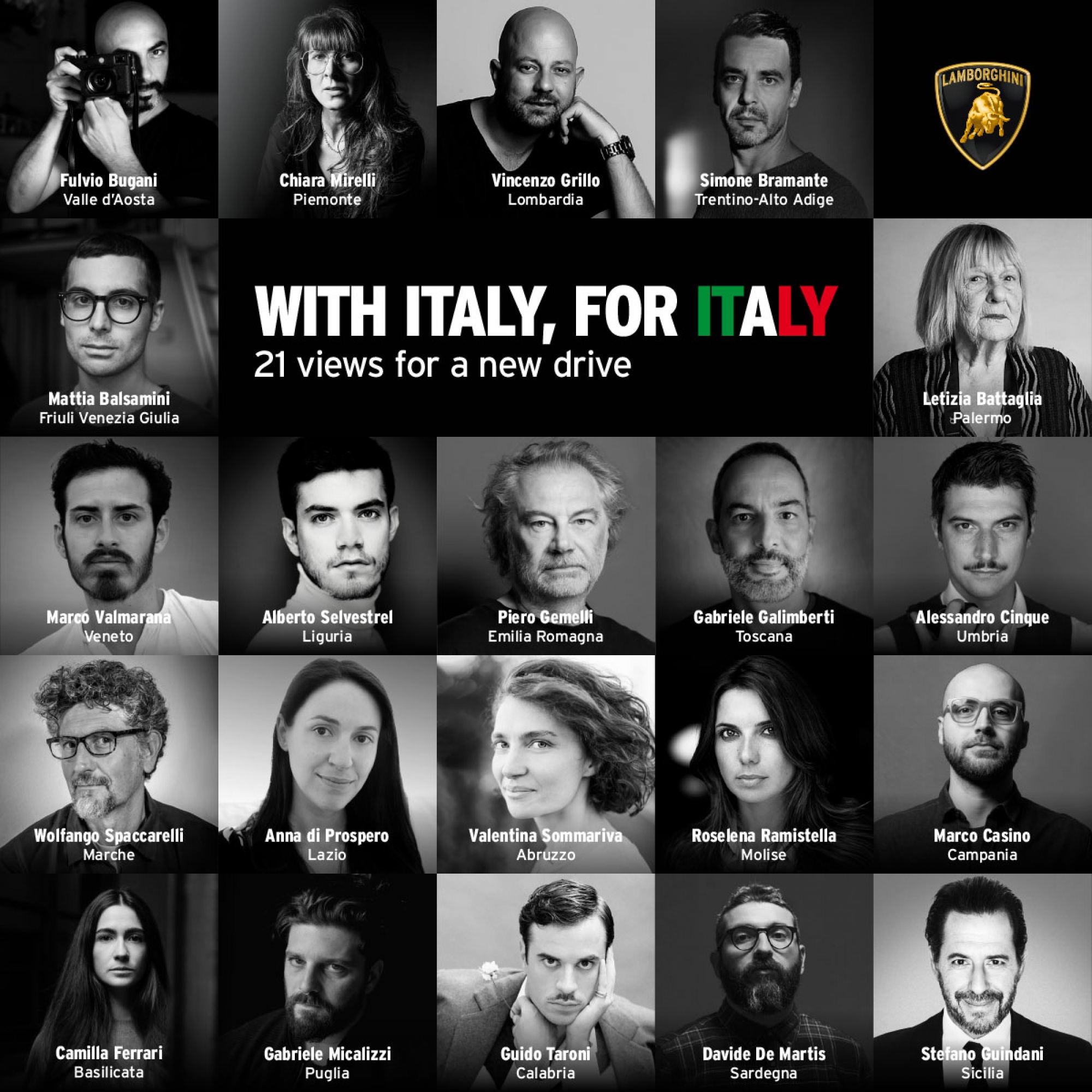 Automobili Lamborghini launches project: “With Italy, For Italy” 20 Italian photographers for 20 regions, plus a cameo by Letizia Battaglia for Palermo, in support of Italy