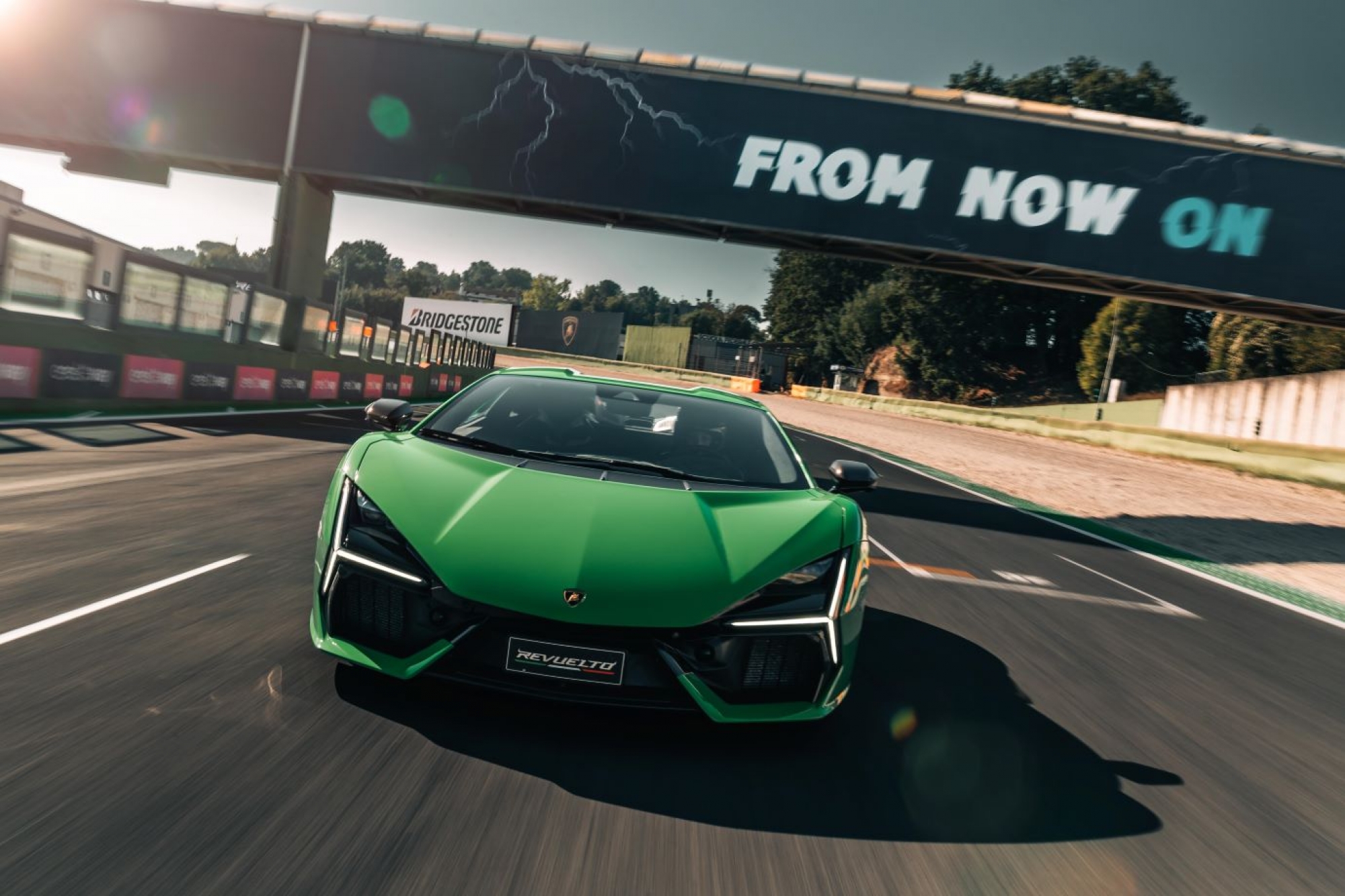 From now on Lamborghini will have two beating hearts: the overwhelming roar of the V12 and the innovative energy of its electric motors. For the first drive on the road and track Revuelto[1], born in Sant’Agata Bolognese, silently traveled the Bolognese streets of the city center, crossed the hills of Valdobbiadene, continued towards the sinuous mountain paths of Monte Grappa and finished its journey at the Piero Taruffi Vallelunga circuit, near Rome.